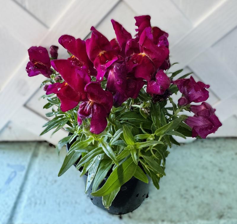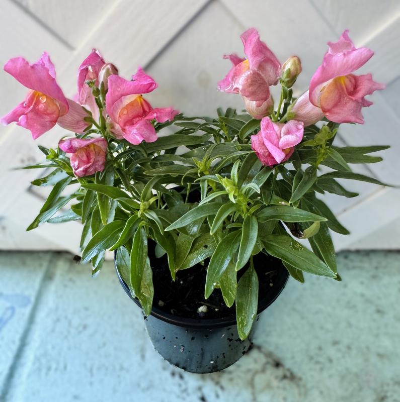 In southern Louisiana, Snapshot snapdragons grow to a height of 6 to 10 inches with a spread of 10 to 12 inches, making them ideal for borders and containers. They thrive in full sun to partial shade and perform best in cooler weather. Water regularly to keep the soil evenly moist but ensure good drainage to prevent root rot.