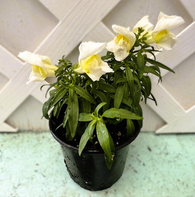In southern Louisiana, Snapshot snapdragons grow to a height of 6 to 10 inches with a spread of 10 to 12 inches, making them ideal for borders and containers. They thrive in full sun to partial shade and perform best in cooler weather. Water regularly to keep the soil evenly moist but ensure good drainage to prevent root rot.