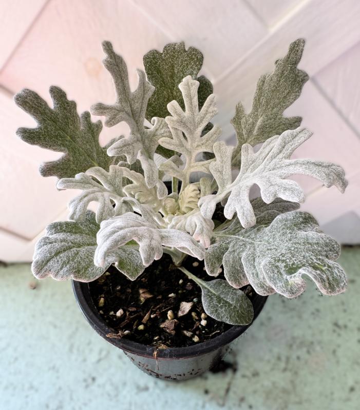Dusty Miller (Senecio cineraria) is a striking ornamental plant known for its silvery, soft-textured foliage that adds contrast and texture to any garden. The plant’s unique color makes it a popular choice for pairing with brightly colored flowers, and its leaves remain attractive throughout the growing season. An interesting characteristic of Dusty Miller is its drought tolerance, making it a low-maintenance option for gardeners looking for a hardy plant that still delivers visual appeal.