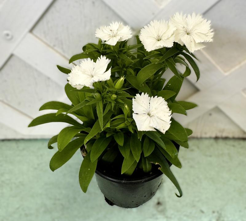 Dianthus typically grows to a height of 6 to 18 inches, depending on the variety, with a spread of 6 to 12 inches. It thrives in full sun, requiring at least 6 hours of sunlight daily, and prefers well-drained soil to prevent root rot. Dianthus is relatively cold-tolerant and can withstand light frosts and even some freezing temperatures, making it a hardy choice for many gardens.