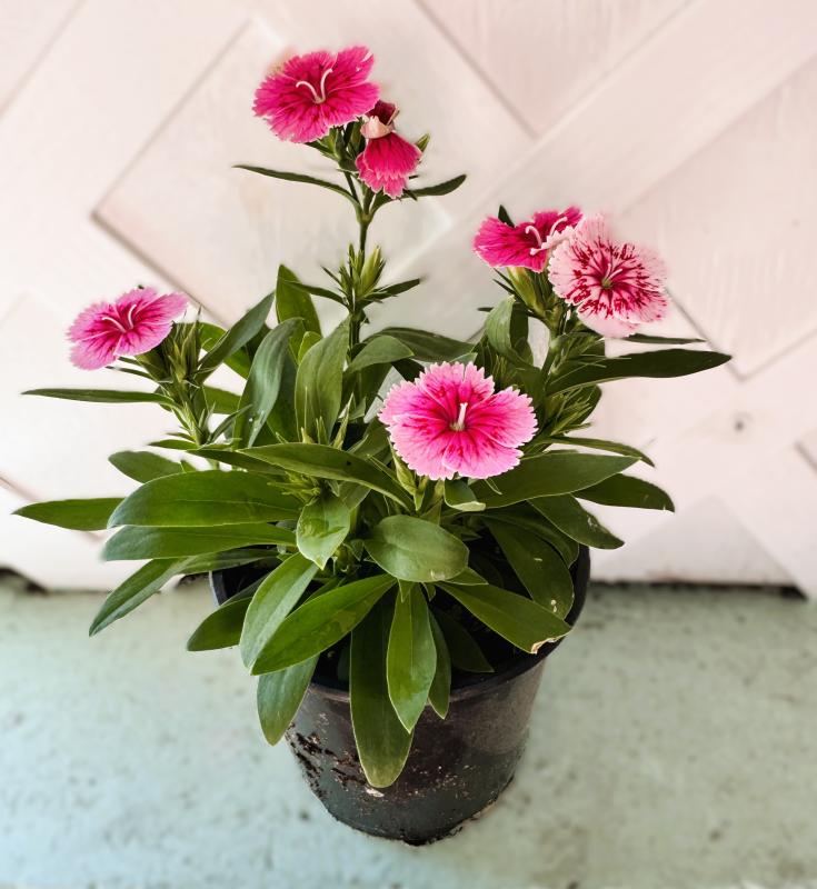 Dianthus, commonly known as "pinks" or "carnations," is a popular, fragrant flowering plant that adds a burst of color to any garden with its vibrant blooms in shades of pink, red, white, and purple. Known for its delicate, fringed petals and spicy, clove-like fragrance, Dianthus is a great choice for garden beds and containers.