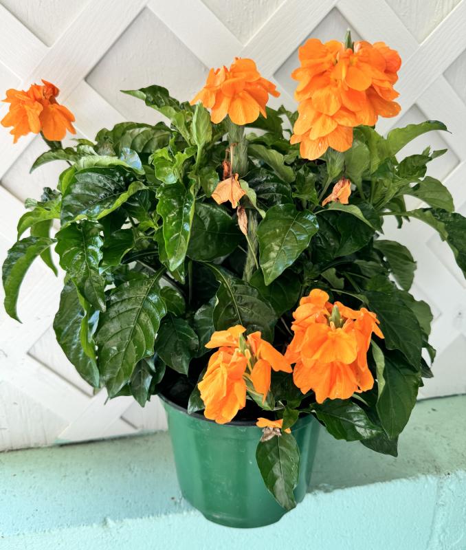 In southern Louisiana, Crossandra Marmalade typically grows to a height of 12 to 18 inches with a spread of 12 inches, creating a compact, bushy form. It thrives in partial to full sun, with bright light encouraging the best flowering. This plant enjoys consistently moist, well-drained soil, so water regularly, but be careful not to overwater, as it can lead to root rot.