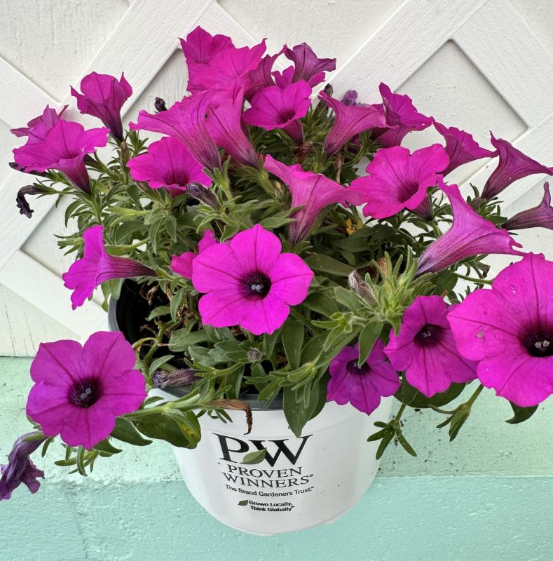 The Supertunia is a popular petunia variety known for its vigorous growth and prolific, season-long blooms that come in a variety of vibrant colors. An interesting characteristic of the Supertunia is its self-cleaning feature, which means it doesn’t require deadheading, making it an easy-care option for garden beds, borders, and hanging baskets.
