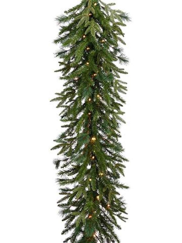 Bring instant holiday sparkle and fullness to your home with the 9' Pre-Lit Mixed Pine Needle Garland. Perfect for balconies, porches, and doorways, this incredibly fluffy and lush garland has 500 tips and 100 smart clear lights to create a bright, festive look that’s ready to shine right out of the box.