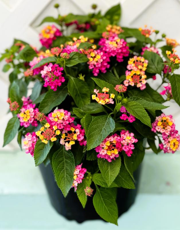 Lantana is a vibrant, heat-tolerant plant known for its clusters of brightly colored flowers that can bloom in shades of yellow, orange, pink, red, or purple, often changing color as they mature. An interesting characteristic of lantana is its ability to attract pollinators like butterflies and hummingbirds, making it a lively addition to any garden. Lantana is also drought-tolerant, making it an ideal choice for low-maintenance landscapes. Lanta thrives in full sun, requiring at least 6 hours of direct sunlight for the best blooming performance.